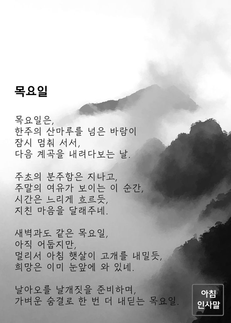 목요일 아침인사말로 마음을 다잡고, 함께 희망을 나누어 보세요.