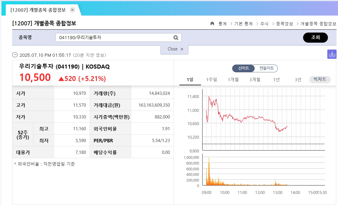 출처: krx (우리기술투자)