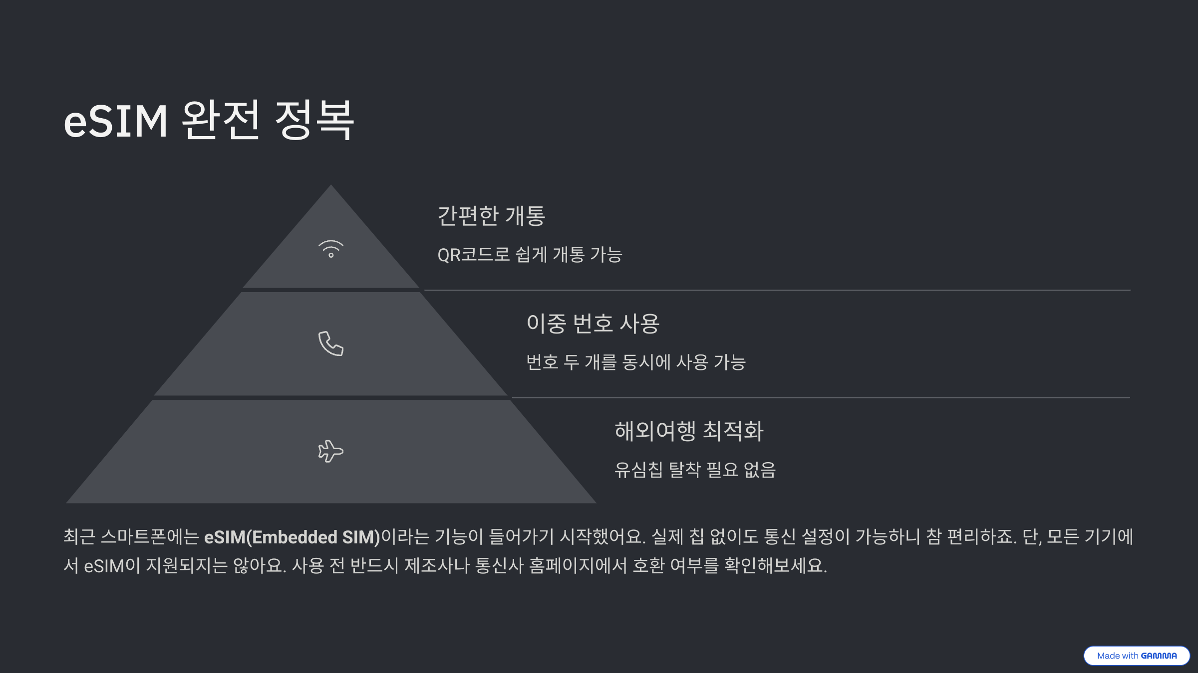 단, 모든 기기에서 eSIM이 지원되지는 않아요. 사용 전 반드시 제조사나 통신사 홈페이지에서 호환 여부를 확인해보세요.