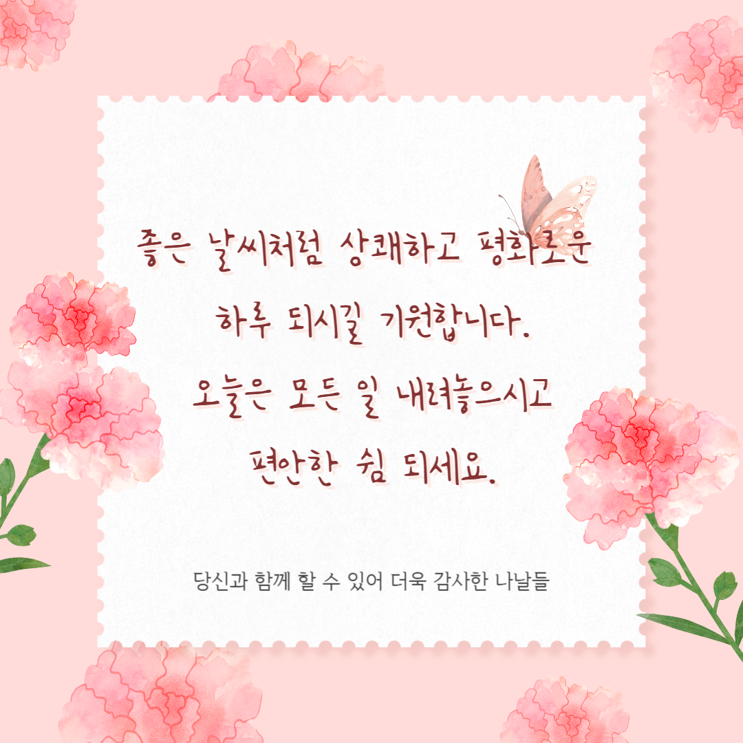하루를 시작하며 보내는 인사는 누군가에게는 큰 응원이 됩니다. ‘일요일 아침인사말’은 형식적인 말이 아니라, 진심을 전하는 마음의 언어입니다. 간단한 문장 한 줄로 상대방의 기분을 밝게 만들고, 따뜻한 하루를 시작하게 해줄 수 있다면, 그것만으로도 충분히 가치 있지 않을까요?
