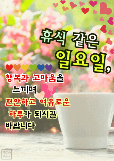 - “편안한 마음으로 여유롭게 시작하는 일요일, 오늘 하루도 행복 가득하세요.”